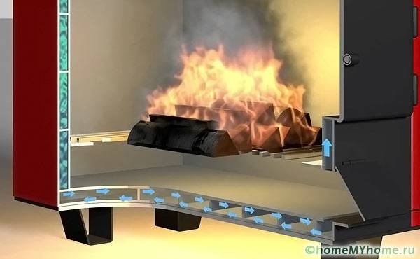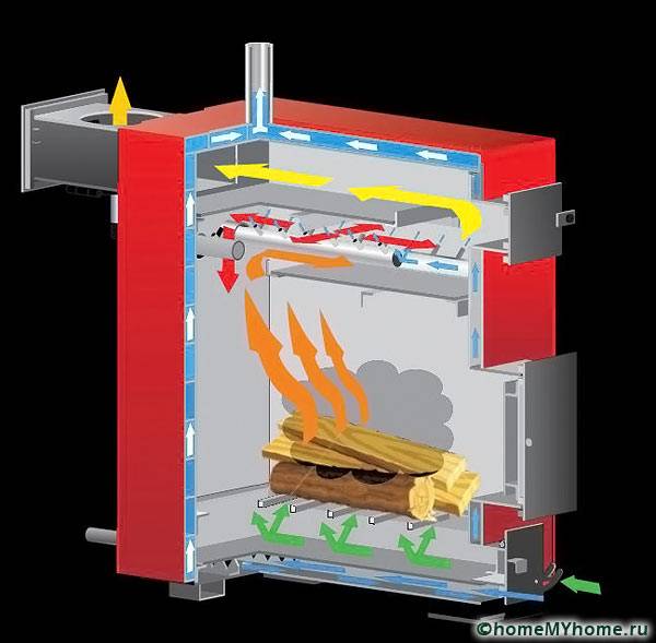 אוויר צח, הדרוש לחמצון נוסף, מסופק מלמטה, עובר דרך צינור אוויר מיוחד עד לאזור הבעירה של הגזים, תוך שהוא מחומם לטמפרטורת פעולה. בחלקו העליון של הדוד ישנם צינורות מיוחדים עם חורים המסייעים להפצת גזים באופן שווה.