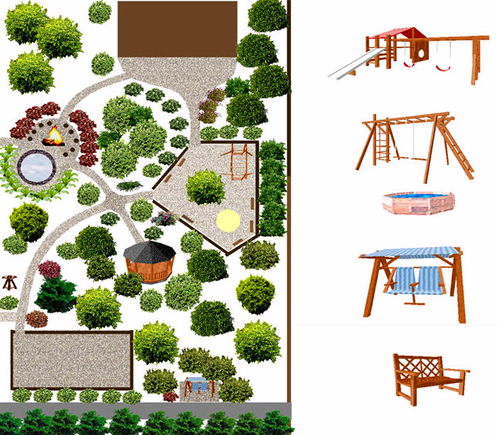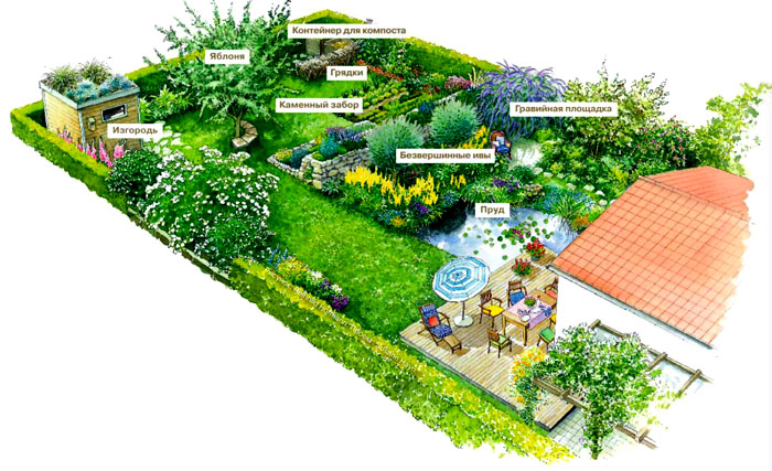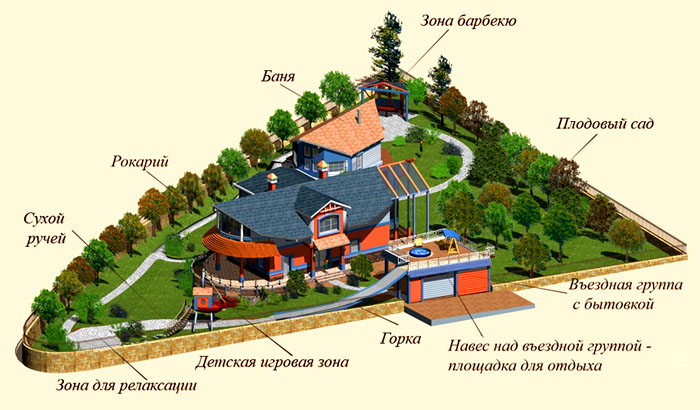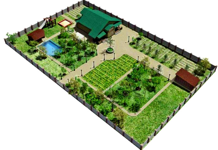 לפרק נכון את הטריטוריה זה מה שבא קודם כל בתכנון. מי שלא מתכנן לבצע עבודות חקלאיות, אין טעם להקצות אדמות רבות לגן ירק. עדיף לשים לב לתחומים אחרים. ומי לא מעוניין בנוכחות באתר אמבטיות, זה יותר טוב יגדיל את הגן. ציפיות אישיות מבית החלומות שלהם ממלאות תפקיד.