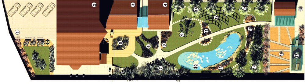 - האם יש צורך להציב צורות אדריכליות קטנות: בריכה, פסלים, ביתנים, ביתן, גשרים וסולמות, קשתות ופרגולות.