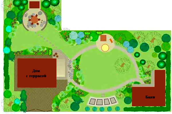 החלק היפה ביותר צריך להיות מוקצה לאזור הבילוי. מה אם עדיין קשה לומר איפה זה יהיה יפה? במקרה זה, עליכם לחשוב היכן תרצו למקם גינת פרחים, מאגר, גן, ביתן. זה אולי החלק הכי רחוק מהבית, אבל מישהו ירצה לארגן את החופשה שלו קרוב יותר.