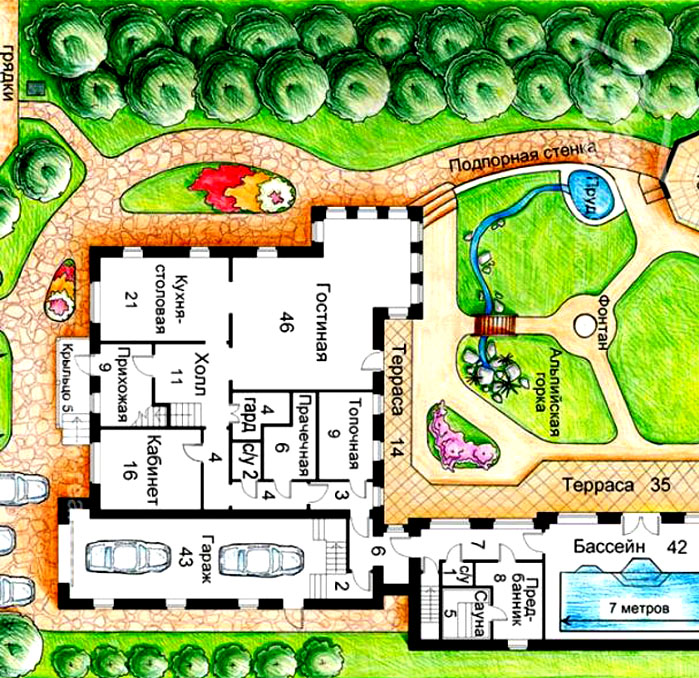 עלילות גדולות נותנות מקום לדמיון. כאן אתה כבר יכול להתאים בריכה במימדים מוצקים, ואלמנטים דקורטיביים, ולמצוא מקומות ליישם את הרעיונות שלך.