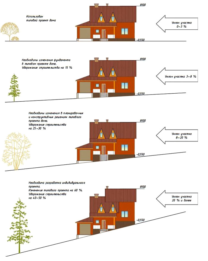 עדיף לקחת את הגבעה לבניית המבנה הראשי. בדרך כלל, זהו בית כפרי. זו הגנה טבעית מפני שיטפונות באביב וגשמים עזים. מרתף הופך גם מחוץ להישג ידם של מים.