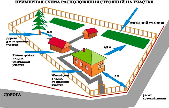 בהתבסס על האמור לעיל, אנו לוקחים בידינו את תוכנית האזור ומציבים את סימני הבית בצד הצפוני של האתר, גם אם הבניין ממוקם במרחק ניכר מהכניסה הראשית.