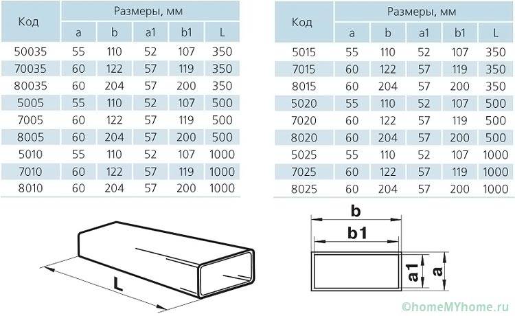 צינורות אוויר מפלסטיק מלבניים עבור אוורור יש מידות סטנדרטיות כמעט מכל היצרנים לכל צורך. חתך התעלות העגולות מוצג גם בטווח הרחב ביותר בין 100 ל 1250 מ"מ.
