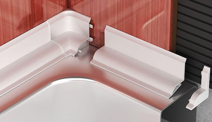 הם מנסים להתקין פינות פלסטיק לאמבטיה מיד לאחר התקנת כל המשטחים הפונים. לאלמנטים אלה פונקציה שימושית ודקורטיבית. אין צורך בכישורים מיוחדים להדבקת רצועות העשויות מחומר זה.