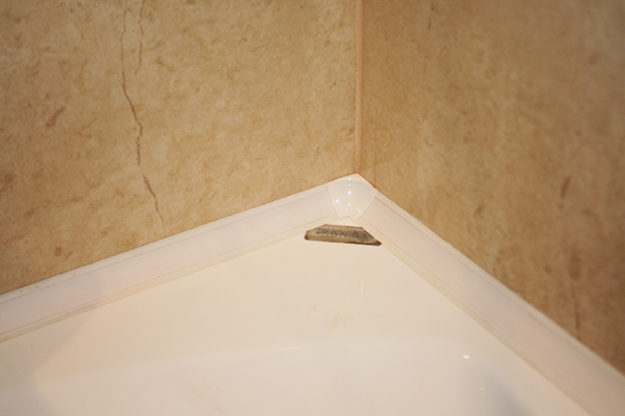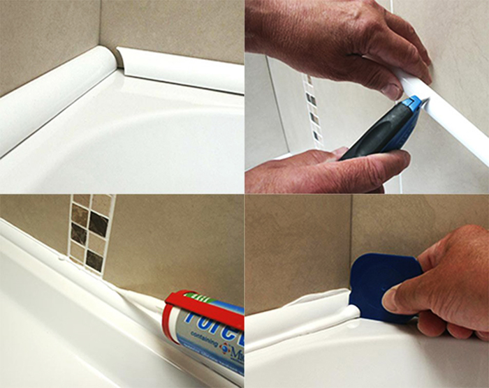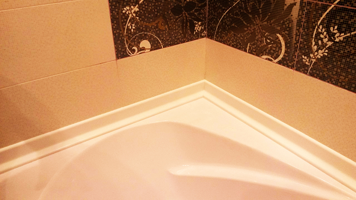 חומר כזה מתאים באופן חלקי. כשמסירים את שכבת המגן נוצרת פינה: היא הולכת על הקיר ועל קצה האמבטיה