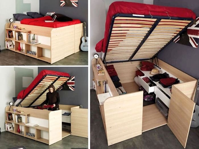 - רק מקום השינה עולה ויוצר נפח שימושי עם גישה מהירה לשטח האחסון למגוון רחב של דברים.