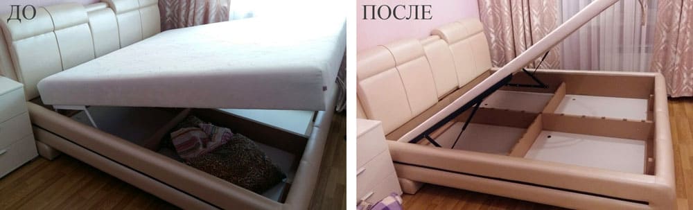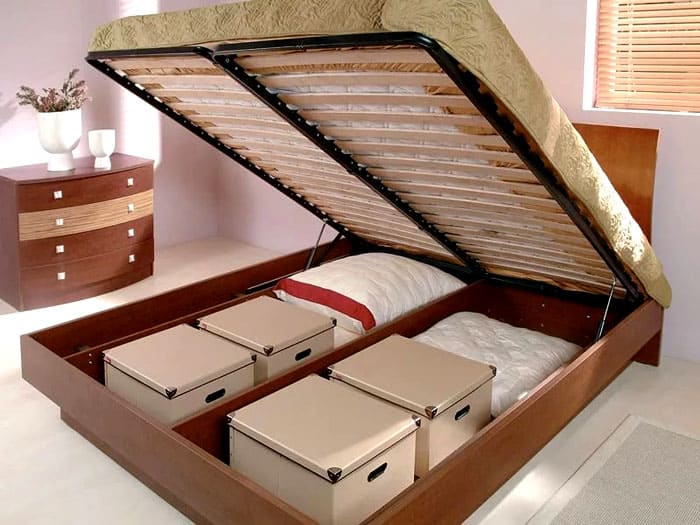 רצוי לחלק את החלל השימושי בתוך המיטה למספר תאים. אם זה לא נעשה במהלך הייצור, מומלץ להשתמש בקופסאות מיוחדות