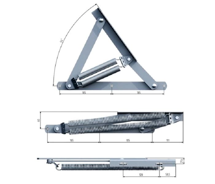 - כּוֹחַ... בעת חישוב כוח הקפיצים או הרמת הגז של מנגנון ההרמה, יש להקפיד על הכלל: עבור 1 ק"ג ממשקל המבנה שיועבר, יש צורך להוציא 10 N. אין זה מתאים להשתמש בקפיצים חזקים יותר או בבולמי זעזועים, מכיוון שהפעולה שלהם תהיה קשה למדי.