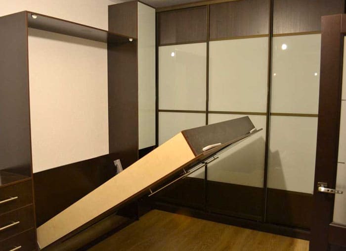 אם המיטה כולה מורמת אנכית, הרי שמדובר במיטת ארון בגדים. יש לו שני פתרונות עיצוב השונים בדרישות לכונן החשמל: