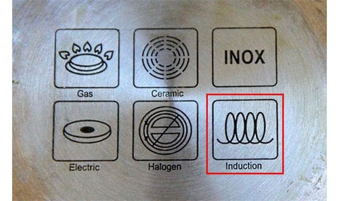 - האפשרות הפשוטה ביותר: להפוך את המכולה ולחפש את הסימון. סמל בצורת סיבובים ספירליים או כיתוב אינדוקציה מודיע על ההתאמה המקצועית של כלי בישול זה.