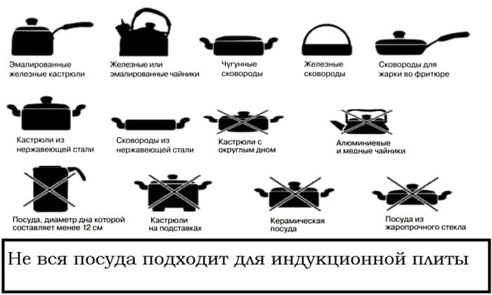 קודם כל, יש להבהיר כי לא משנה מה החומר, עובי תחתית הכלים צריך להיות 2-6 מ"מ. אחרת, דפורמציה תרמית אפשרית.קוטר המוצרים חייב להיות יותר מ 12 ס"מ, בגלל אזור המגע עם הכיריים.