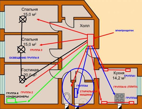 בתרשים, יש צורך לציין את נקודות החלוקה. ישנם שלושה סוגים של ניתוב חוטים - מקבילים, סדריים ומעורבים. זוהי האפשרות האחרונה שהכי רציונלית לשימוש - היא זולה יותר מכל האחרות מבחינת עלויות חומר, יתר על כן, היעילה ביותר. על מנת להקל על ההנחה, הנה תוכנית משוערת לפירוק נקודות חיבור: