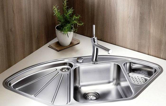למטבח קטן מתאים כיור משולב או אפשרות עם שתי קערות מלבניות.בעת התקנת כיור פינתי במטבח, אל תשכחו להאיר את אזור העבודה. זה צריך להיות נוח.