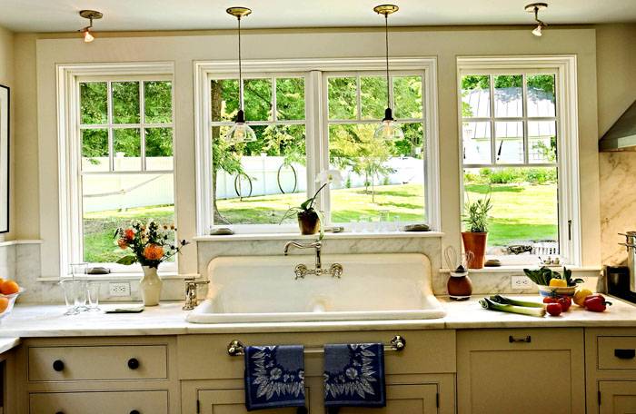 - דגם הכיור נראה מקורי במטבח ליד החלון. סידור זה יאפשר לכם לצפות בילדים הולכים בחצר במהלך העבודה.