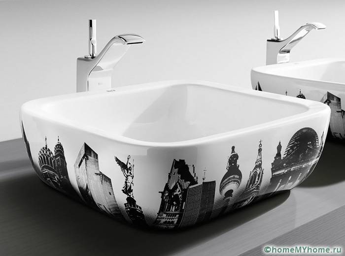 ניתן להתקין דגמים מלבניים בכל חדר אמבטיה. עבור חדרים מרווחים משתמשים לעתים קרובות יותר בדגמים עגולים וסגלגלים. ניתן לגשת לקערה בצורה זו משני הצדדים. אין לכיורים צורה זו חור ברז. זה מתנגש במשטח השיש. במקרים נדירים פגזים הם משולשים, בצורת יהלום או מצולעים. ניתן לבצע עבודות מחבר תאורת LED אחורית מובנית.