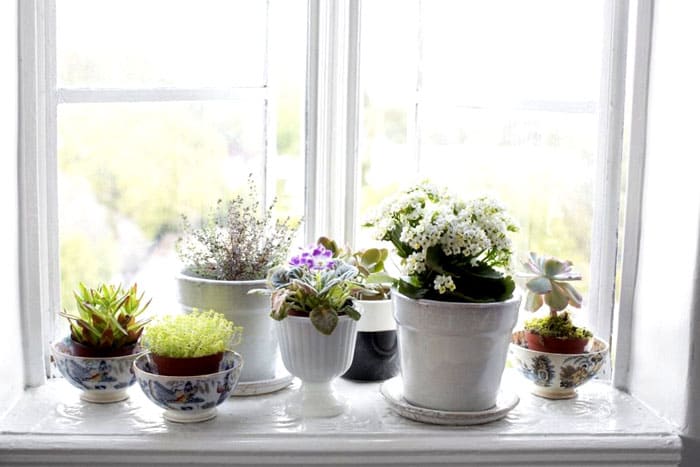 גן עדן ירוק ופורח על אדן החלון