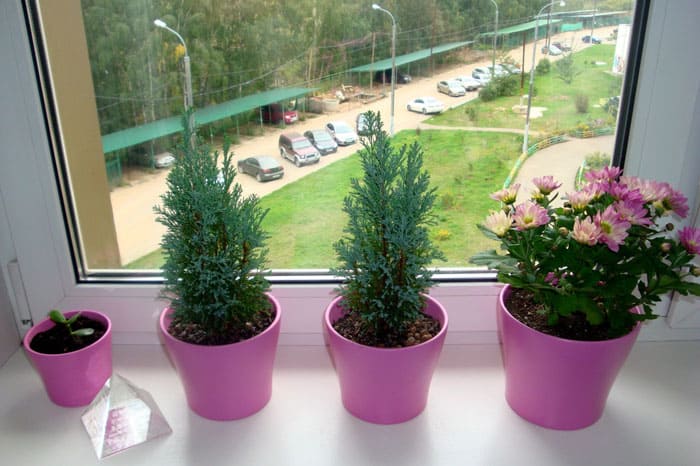 אם החלון צפוני, הסירים אינם ממוקמים רחוק יותר מ -2 מ 'ממקור האור; מרחק של 3 מ' מותר מכל חלונות אחרים.