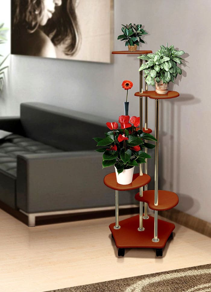 מעמדי רצפה משנים את הרושם: צמח אחד ואותו נתפס בדרכים שונות לחלוטין, פשוט עומד על הרצפה ושוכב בצורה מלכותית ביציע יפה.
