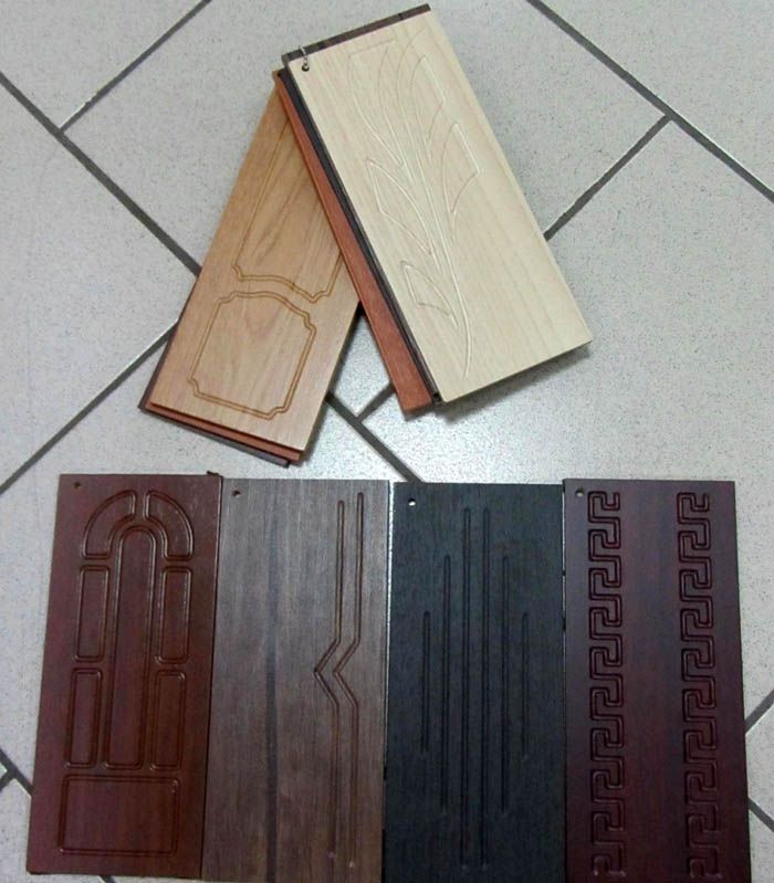 לוחות MDF בחר עובי של 8-16 מ"מ. כמו בדוגמה הקודמת, ניתן לתקן מוצרים שונים בחלק הפנימי ובחוץ של דלתות הכניסה לדירה.