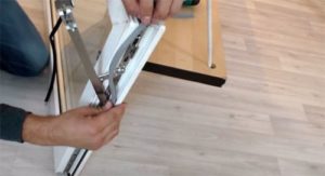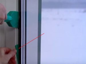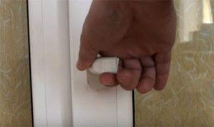 - אוחזים בידכם את האבנט הניתן לטלטול, לוחצים קלות על סרגל החסימה. בשלב זה, יש להפנות את הידית למצב הפתיחה המקביל לאדן החלון.