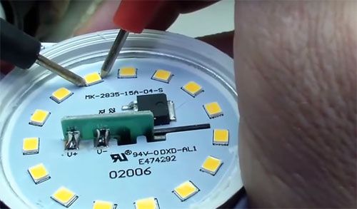 כדי למצוא את הגורם להתמוטטות, יהיה עליכם לבדוק כל רכיב במנורת ה- LED. במקרה זה, אינך יכול להסתדר בלעדיו מולטימטר.