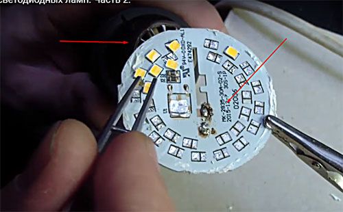 כפי שאתה יכול לראות, תיקון גופי LED אינו קשה. אתה צריך להיות בעל ראייה טובה ומערכת כלים צנועה. היתרונות של פעילות זו ברורים: ניתן להחזיר את המנורה תמורת אגורה. מודד ו מלחם עוזר לך! אם יש לך שאלות או שאתה מוכן לחלוק את החוויה שלך, כתוב!