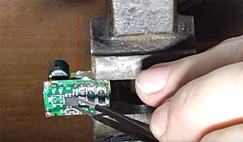 ![]() | יש להסיר את הקבל הנפוח מהלוח באמצעות מלחם. |