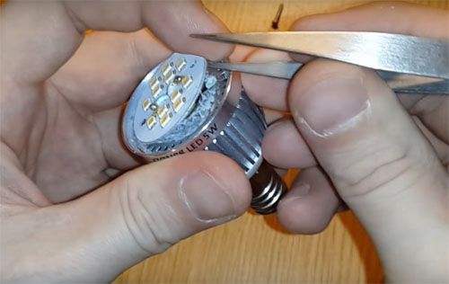 לתיקון מנורות טוב שתהיה מנורת תורם דומה.מוליכים למחצה מוסרים ממנו להחלפה. כיצד להחליף את ה- LED:
