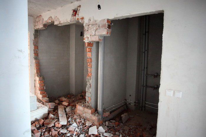 אם נעשים שינויים תכנוניים בתוכנית התיקון, כלומר: בניית מחיצות, ביצוע או הנחת פתחים, יש לעשות זאת כעת. בשלב זה מותקנים בהכרח חלונות חדשים, אם מתקבלת החלטה להחליף את אלה שהותקן על ידי הקבלן במבנים בעלי מאפיינים איכותיים יותר.דלתות הכניסה והדלתות הפנימיות מותקנות לאחר סיום העבודה הגסה, כאשר האשפה תוצא מהשטח.