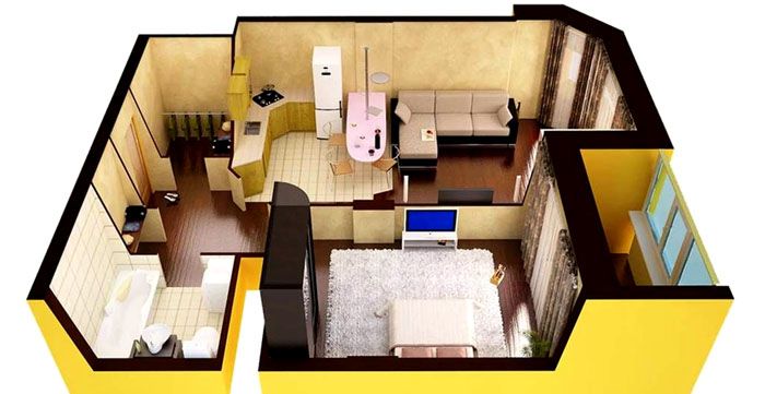 - יחד עם זאת, כמה גופי אינסטלציה מותקנים מיד בדירה כזו: אמבטיה, שירותים, כיור בחדר האמבטיה, עם צנרת מלאה לאספקת מים, אספקת מים חמים וביוב.
