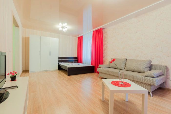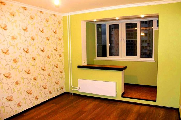 גרסה ששימשה זמן רב. הסלון הורחב בו בגלל המרפסת הצמודה. תיקון פשוט למדי עם צביעת קיר וטפטים. התקרה מטויחת וצבועה, הרצפה מכוסה לרבד. זה לא יכול להיות קל יותר.