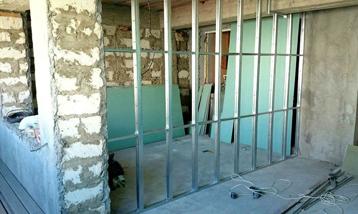 לדוגמא, מחיצות מגבס המבוססות על מסגרת מתכתית. עובי 60-70 מ"מ ובתוך לשונית חומרי בידוד רעש מחיצות כאלה עושות עבודה מצוינת עם האחריות המוטלת עליהן. אתה יכול להכין חלון ו פתחי דלתות, להתקין מנורות, לתלות עליהם מכשירי חשמל ביתיים ורהיטים.