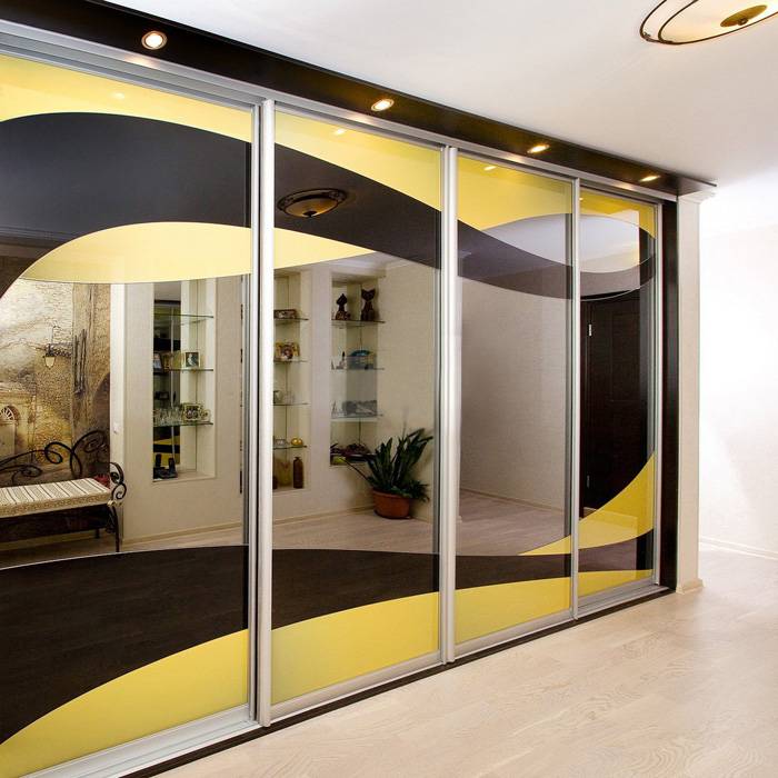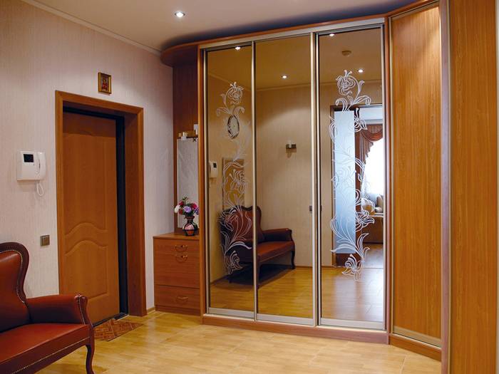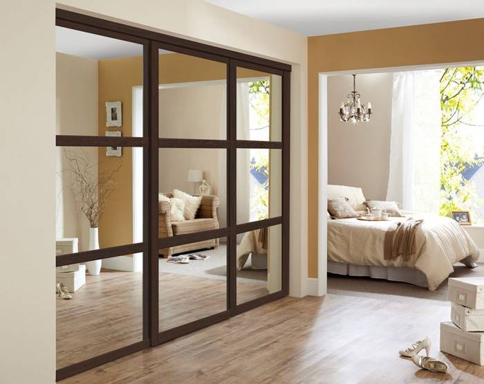 - עלי דלת. עדיף להניח מראה אחת לפחות על דלתות ארונות הזזה, שנמצאות במסדרון. יחד עם זאת, זה מגדיל באופן חזותי את החלל ויכול לשחק את הפנים בצורה מעניינת. וחשוב גם על מספר הבדים, זה יכול להשתנות בין שניים לחמש, או אפילו יותר, תלוי בגודל הרהיטים.