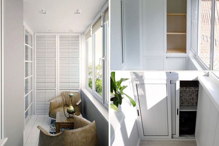 זו הפונקציונליות שמגיעה ראשונה בעת תכנון מערכת אחסון למרפסת: העיצוב יכול לחסום את הגישה של האור לדירה, הדלתות מפריעות למנורה או לא נפתחות עד הסוף, דגמים גדולים יכולים לתפוס את כל השטח הפנוי.