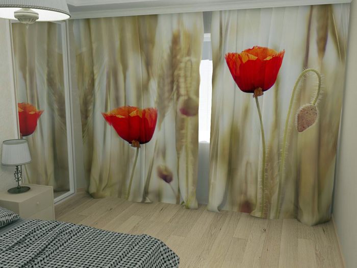 וילונות עם הדפסת תמונות נקראים אפקט תלת ממדי. רכישה כזו לא תביא את הנוחות הרצויה לכל חדר שינה. על מנת שווילונות פרקטיים ויפים אלה יקבלו את האפקט הרצוי, על חדר השינה להיות יותר מ -18 מ '2 ולא להציף פרטים. אפילו כל כיסוי קיר צריך להיות מוצק. ציורים על וילונות יכולים להיות כל דבר: לרוב אלה דפוסים יפים או נושאים פרחוניים.