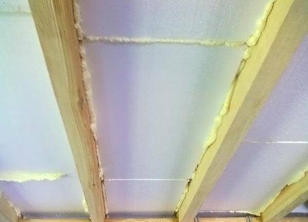 מכיוון שלוחות הקצף נוקשים בצורתם, ניתן לבצע את הקיבוע ללא דבק, רק בעזרת פסיגליים. בשל הנוקשות, ניתן לטייח או להדביק את משטח הקצף בשכבות חומרים נוספות, מה שמשפר את איכות בידוד הקול. עם כל היתרונות, בידוד הרעשים של התקרה בדירות מתחת לתקרת מתיחה העשויה קצף נעשה לעיתים נדירות, מכיוון שיש לו חסרון משמעותי - דליקות. כאשר הוא נחשף לאש, הוא נדלק מיד, נשרף עם שחרור כמות עצומה של חום וגזים רעילים.
