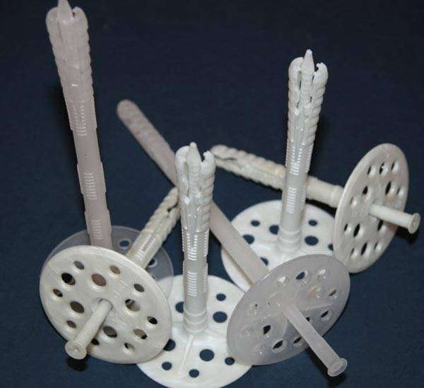 בשיטת הידוק זו, העיקר לחשב נכון את הצעד. אם חומר הבידוד קל ומשקל, ניתן למקם את הדיבלים לעתים קרובות יותר מכל 60 ס"מ. עדיף לתקן פלטות מינרליות רכות בצורה מהימנה יותר, ולהפחית את המגרש ל-30-40 ס"מ. בדרך כלל משתמשים בדיבלים כאלה בשילוב עם דבק, הידוק כזה יהיה במיוחד אָמִין.
