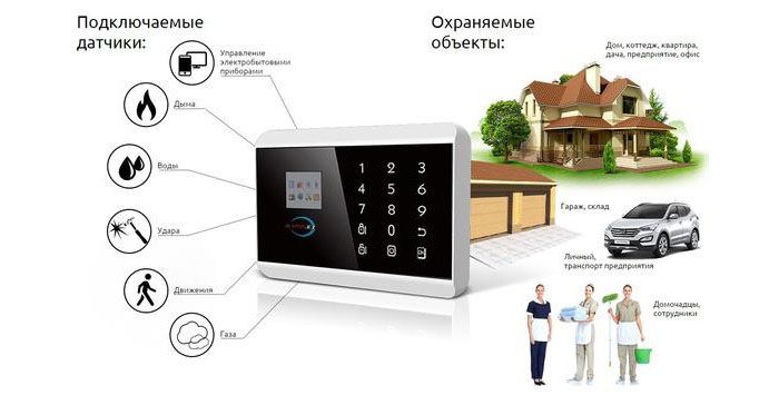 - ריבוי פונקציונליות - היכולת להתחבר למודול GSM אחד למערכות אבטחה אחרות (אזעקת אש, הקלטת וידאו וכו '), כמו גם מערכות "בית חכם" (שליטה במערכת החימום והמיזוג, השקיית מטעים והפעלת תאורה מלאכותית);