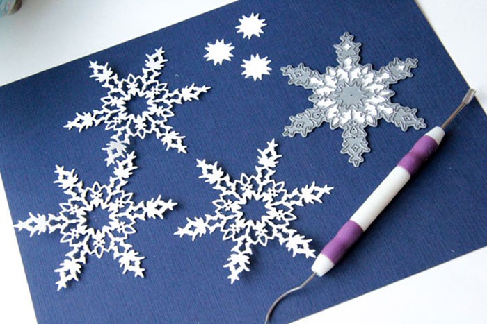 שלג עף, מסתחרר, מסתחרר ... ונשכב בשקט על הגלויה. הודות לאגרוף חור דמוי פתיתי שלג שונים או חותך מתכת מעניין, הם מקבלים הזדמנות מצוינת לקישוט החורף.