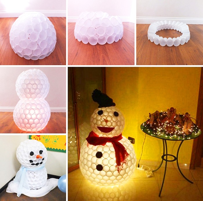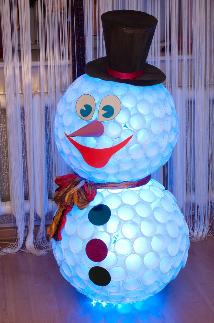 איש שלג זוהר עשוי כוסות פלסטיק