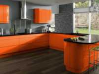 - תפוז - צבע השמחה ומצב הרוח שטוף השמש. אתה יכול לצרף אליו כחול או כחול. השילוב עם סגול או לילך נראה מקורי. דוגמאות למטבחים כתומים בפנים: