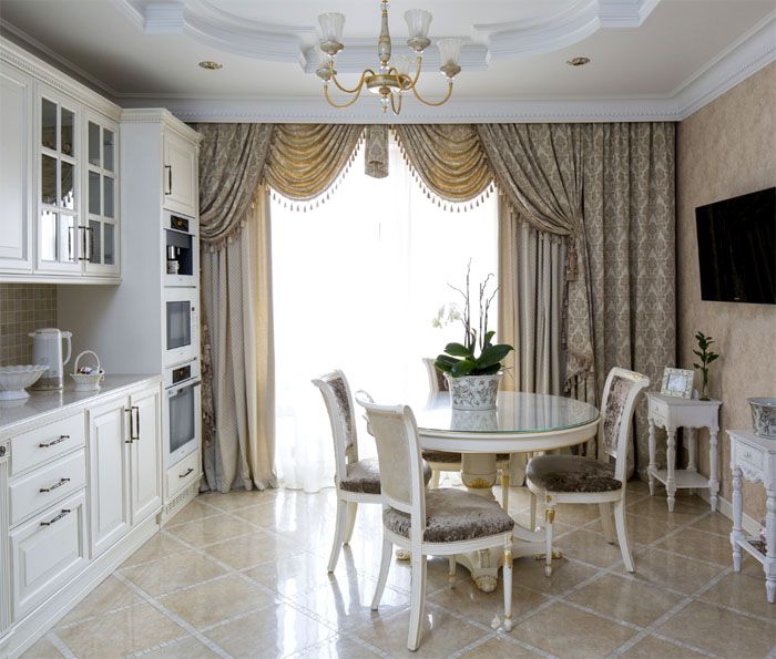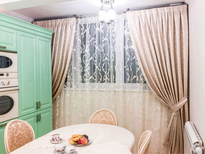 וילונות מודרניים ארוכים במטבח - תמונה של דגמים 2017-2018