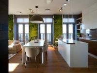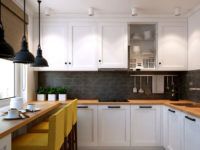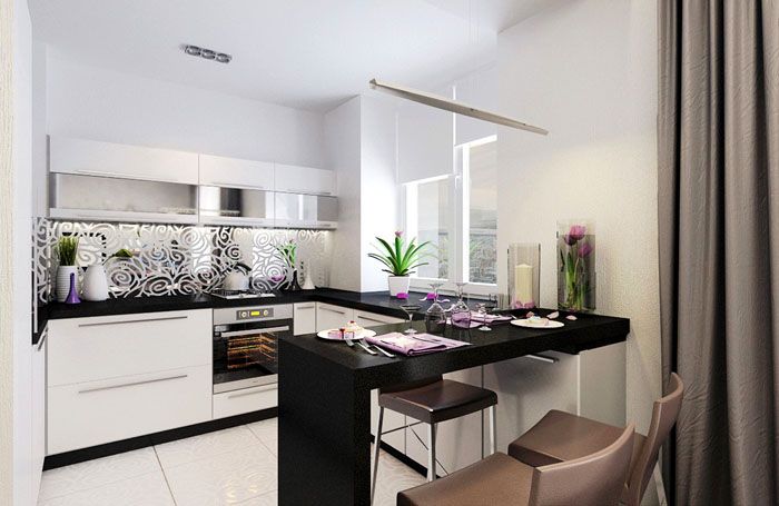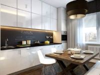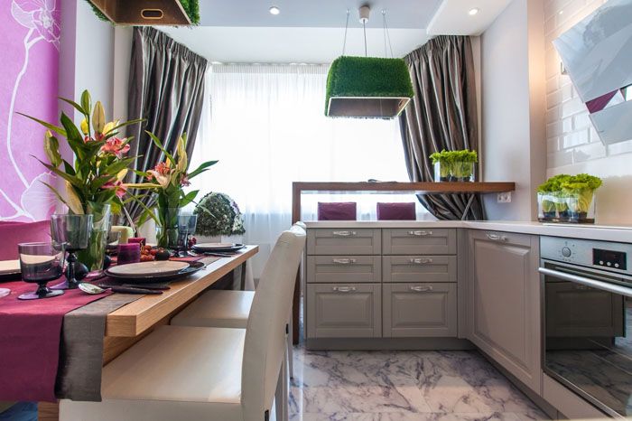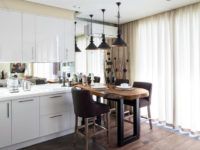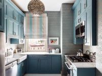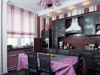 - יש לזכור לגבי האפשרות ליצור אשליות אופטיות בעזרת דפוס על הבד, המשפיעים על תיקון הפרמטרים הגיאומטריים של החדר. אז, מכוונת אופקיתדפוס מפוספס או פסים יגרמו למטבח להיראות רחב יותר, והאנכי - גבוה יותר.