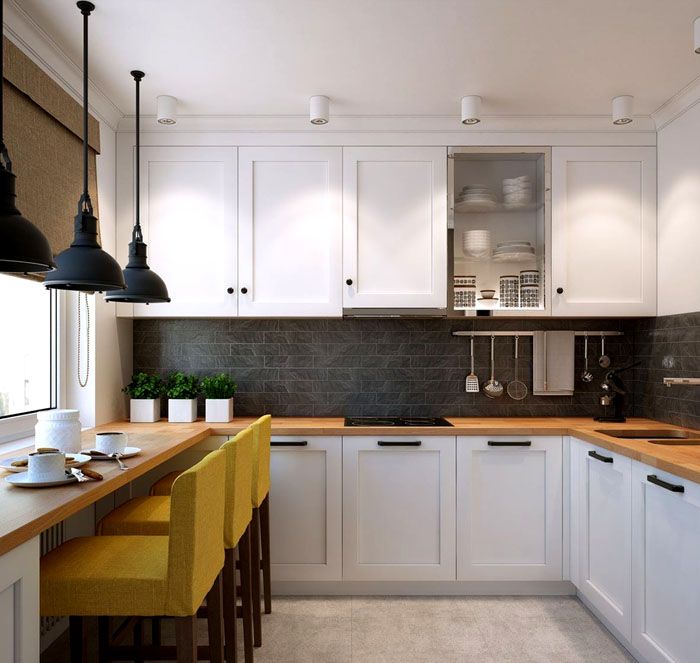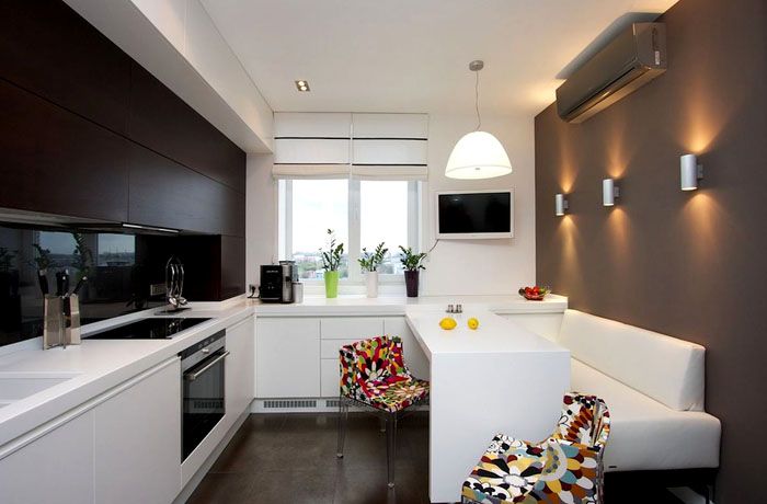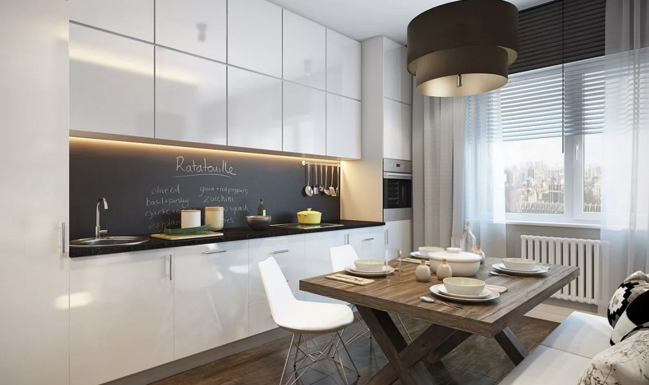חָשׁוּב! פתרונות מנוגדים המשתמשים בצבעים עמוקים ועשירים מומלצים למטבחים גדולים.