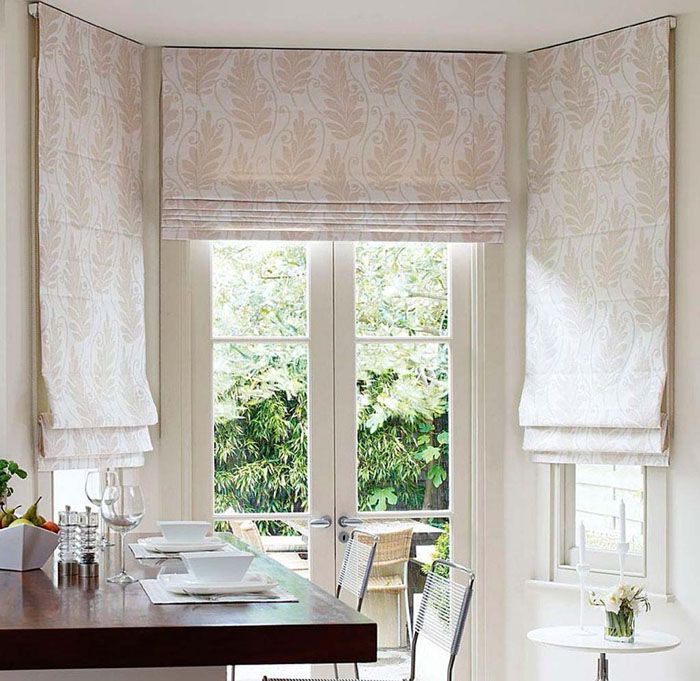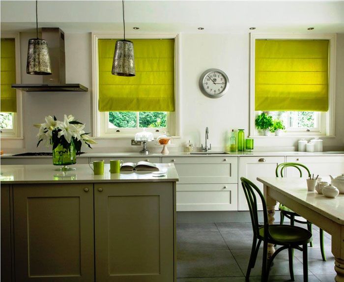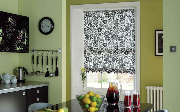 וילונות גלילה ותריסים רומאיים במטבח: תמונות ותכונות של סגנונות מודרניים