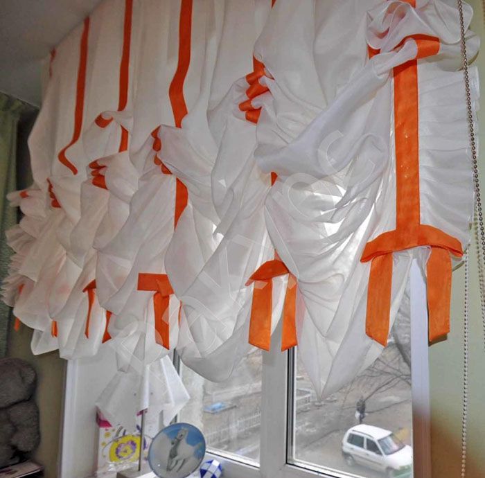 וילון מסוג זה נראה אלגנטי מאוד, אך עם פאר חזותי הם אינם תופסים מקום רב ואינם יוצרים אווירה של עומס בחלל. אם הם מושמטים, אז הם נראים כמראה של בד מלבני פשוט עם קצוות מעוגלים, המכסים לחלוטין את פתח החלון.