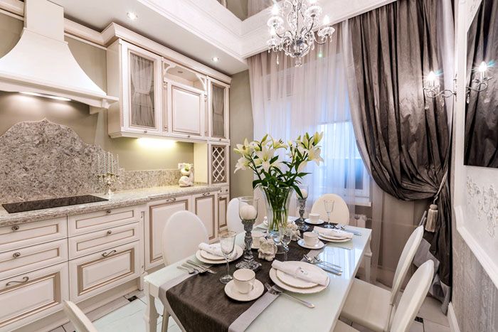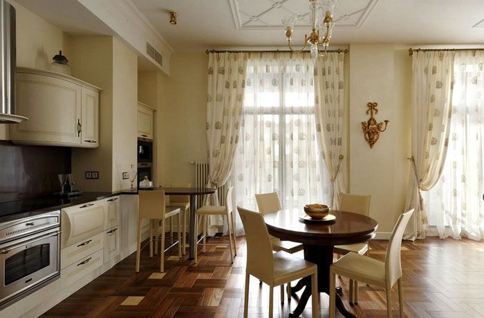 - יש צורך לבחור וילונות בהתאם לסגנון החדר - בעזרת טקסטיל במטבח תוכלו להדגיש את כיוון הסגנון הנבחר ולהעצים את האפקט שלו. אז, בשביל חללי פנים קלאסיים בחרו וילונות וחוטי דגמים, ובסגנון מודרני ניתנת העדפה לדגמים לקוניים - תריסים רומיים וגלילים או תריסים פונקציונליים.