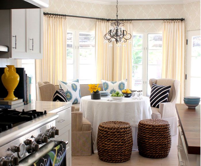- דגם שנבחר היטב יעזור ליצור מבטא מרהיב על פתח החלון ופינת האוכל הממוקמת בקרבתו.
