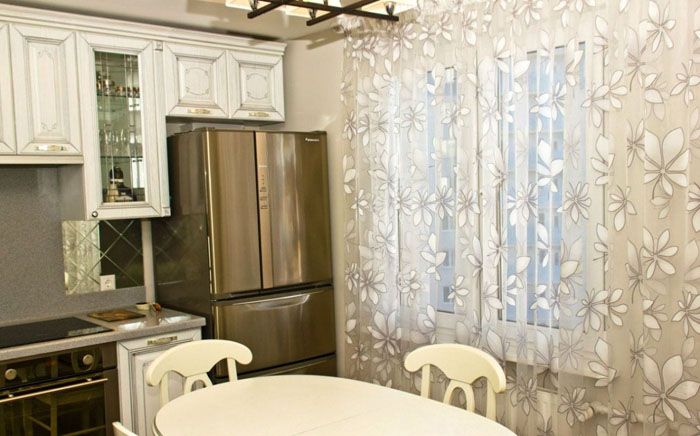וילונות נימה במטבח: תמונות של אפשרויות מסוגננות